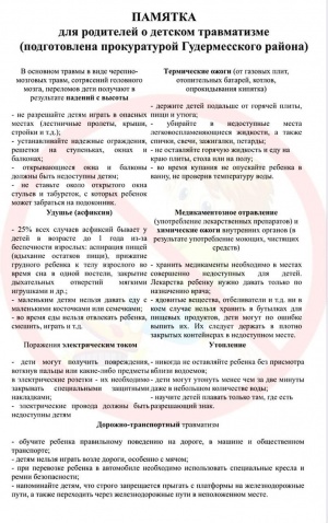 Памятка для родителей о детском травматизме (подготовлена прокуратурой Гудермесского района)